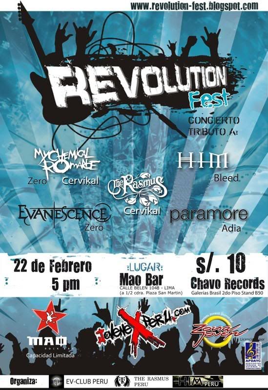 Se realizara un tributo a Him, Paramore, Evanescence, mcr y the rasmus, la fecha es el 22 de Febrero y las entradas las venden en chavo Records de Galerias Brasil.
